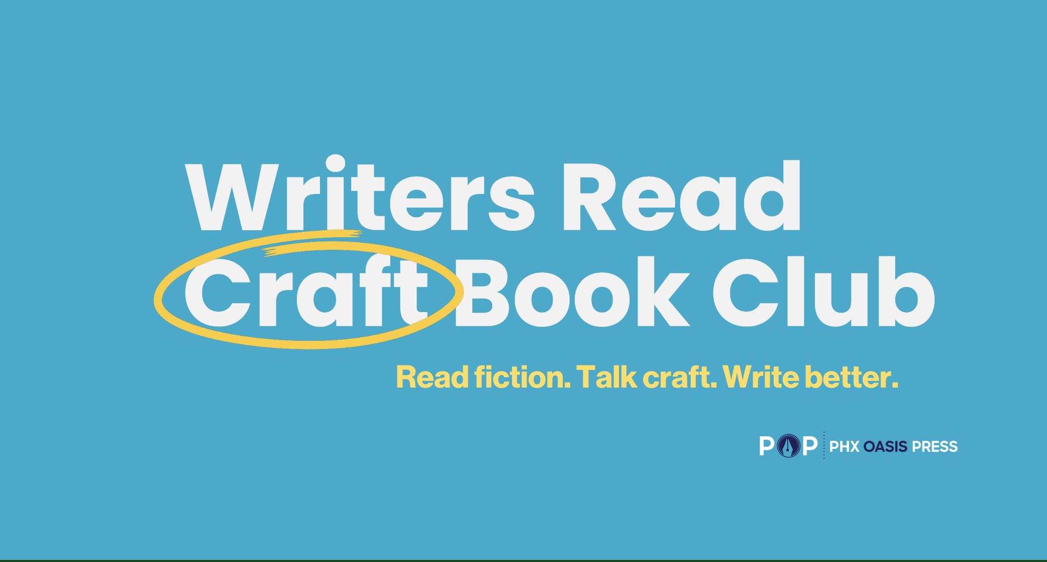 POP’s Craft Book Club is open to authors of all skill levels and genres. There’s no cost to participate, but attendees do need to read or listen to the book at their own expense. We post all upcoming events, including Craft Book Club, on POP’s Meetup and also on our event calendar. And don’t worry, it’s okay if you don’t finish the book in time for the club. Join us for the conversation, and to meet other local writers.